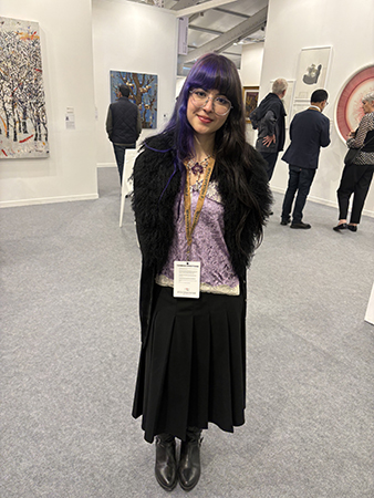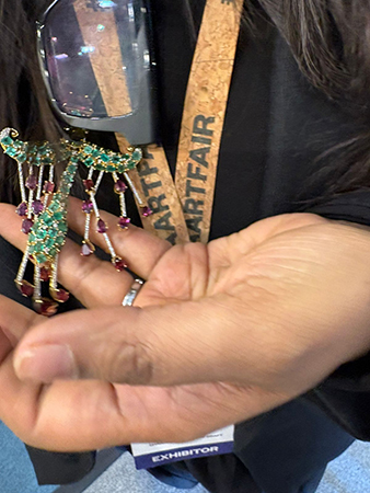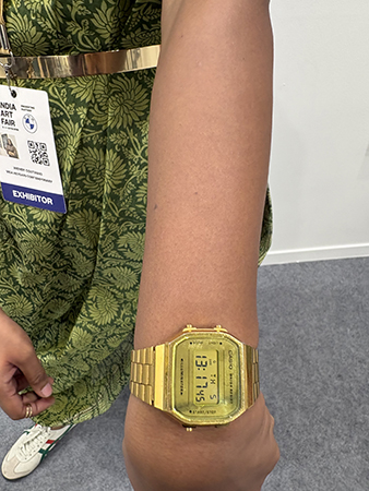 India Art Fair is also a great revelation in fashion. Joy Crew, the director of Ota Fine Arts, Shanghai, wore an Indonesian designer Biyan Wanaatmadja’s trench coat patchwork silk, lace, and elaborate sequins, matched it with baby blue talons, Chanel earrings. “My husband travels, he is the one who got it for me. I’m Singaporean but I live in China,” she smiled as she showed me the must celebrated Yayoi Kusama exhibit. “She Alis a legend as she grew up at a time of restriction so her art became a medium of expressing freedom just like fashion.”